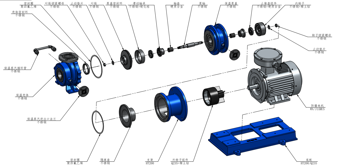 產(chǎn)品型號:NMQEW不銹鋼雙保溫磁力泵