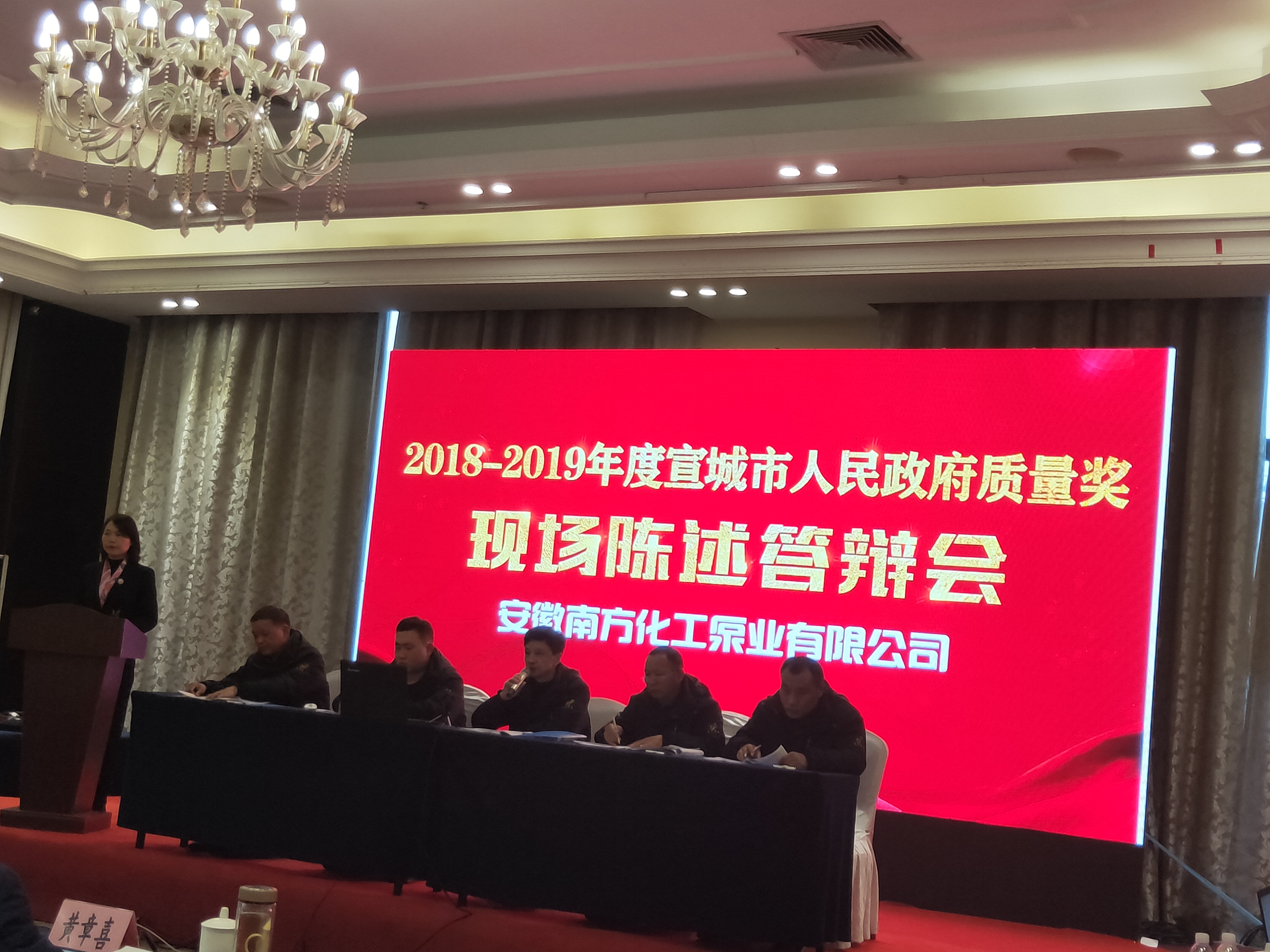 2018—2019年度市政府質(zhì)量獎(jiǎng)陳述答辯會(huì)—安徽南方泵業(yè)作為全市十家入圍企業(yè)進(jìn)行現(xiàn)場(chǎng)答辯