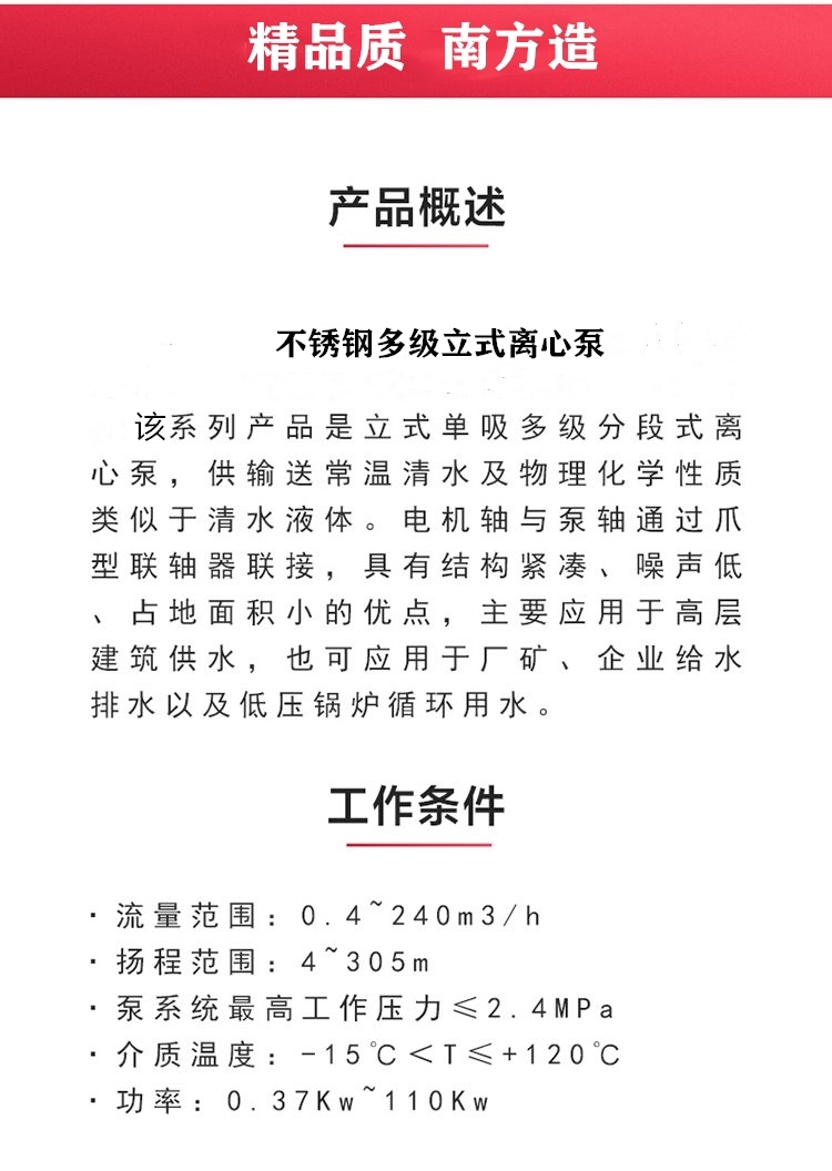 更換方便,質量穩(wěn)定,過流部分均采用304,、316不銹鋼材料,可以輸送從自來水到工業(yè)液體的各種不同