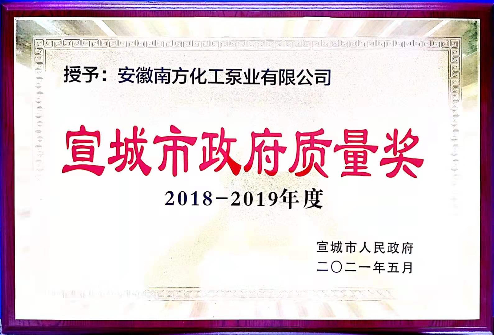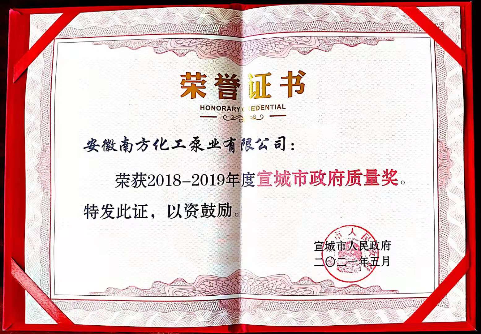 熱烈祝賀安徽南方化工泵業(yè)有限公司榮獲市政府質(zhì)量獎