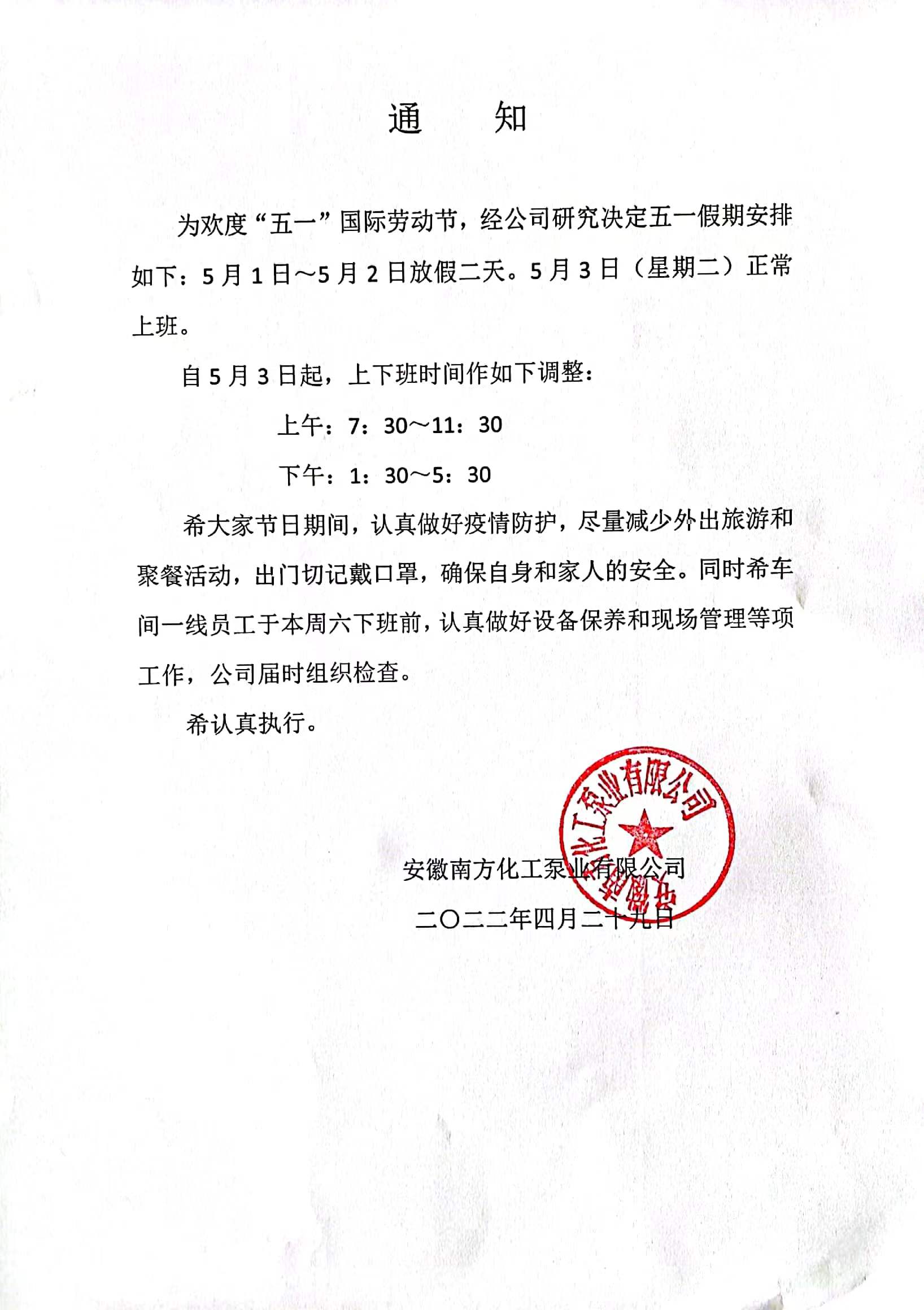 根據(jù)《國務(wù)院關(guān)于節(jié)假日安排的有關(guān)規(guī)定》,結(jié)合公司實(shí)際情況,現(xiàn)將2022年“五一”勞動節(jié)放假事項通知如下:
