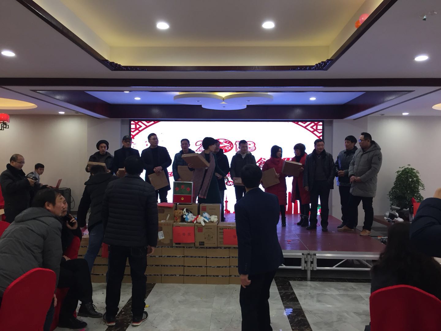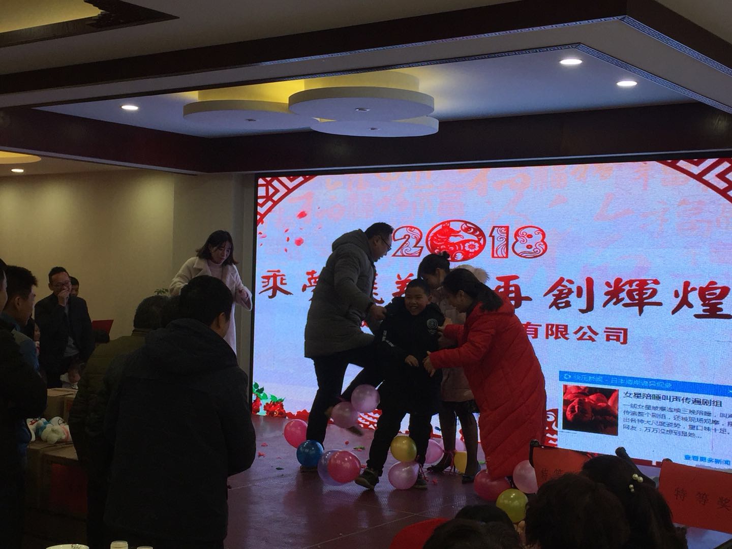 本次年會在大合唱《真心英雄》中拉開帷幕。本次年會以“乘夢飛翔,再創(chuàng)輝煌”為主題,表彰了優(yōu)秀員工、愛崗敬業(yè)和工藝創(chuàng)新者,以及銷售標兵,開展了抽獎活動,并開展了游戲、合唱等文藝表演活動。大家在快樂的氣氛中,分享2017創(chuàng)業(yè)成果,憧憬2018美好未來。